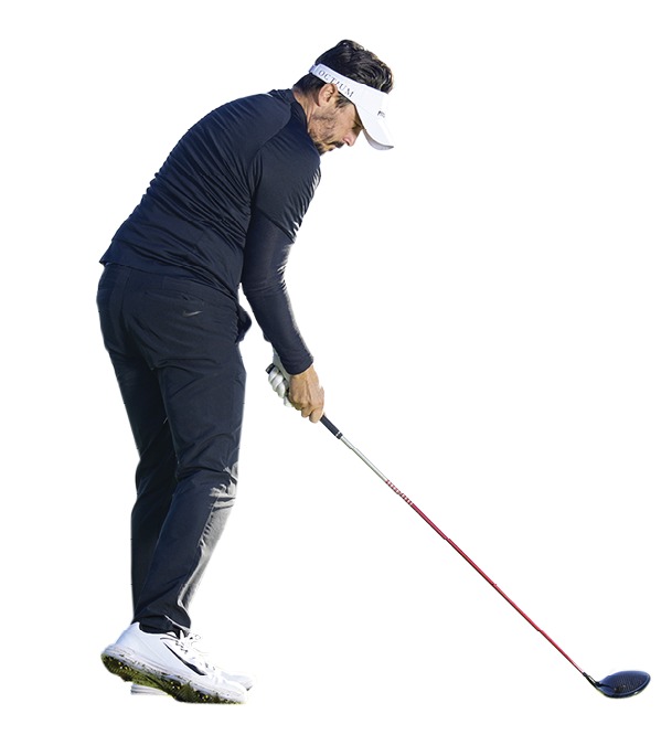 He improved his sequencing in the downswing with a drill shown to him by Alex Noren. By placing a stick vertically in the ground about 50cm ahead of the ball, he would hit half wedges and try to stop the club against the stick. The drill encouraged him to fire the muscles in the correct order, creating the feeling of fully loading and using the big muscles in his legs and core.